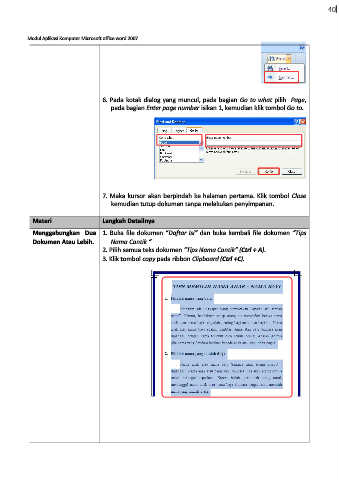 Menggabungkan Dua 1. Buka file dokumen “Daftar Isi” dan buka kembali file dokumen “Tips