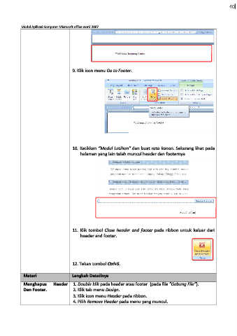 Menghapus Header 1. Double klik pada header atau footer (pada file ”Gabung File”).