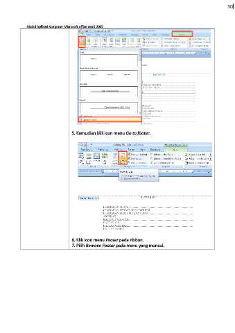 Modul Aplikasi Komputer Microsoft office word 2007 5. Kemudian klik icon menu Go to footer. 6. Klik icon menu Footer pada ribbon. 7. Pilih Remove Footer pada menu yang muncul.