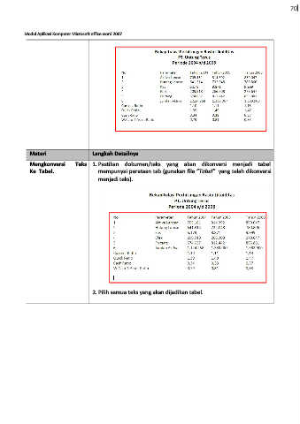 Mengkonversi Teks 1. Pastikan dokumen/teks yang akan dikonversi menjadi tabel