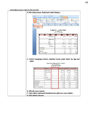 7. Pada ribbon kelompok Row&Columns pilih icon menu Delete.