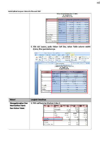 5.  Klik  tab  Layout,  pada  ribbon  Cell  Size,  isikan  Table  column  width: