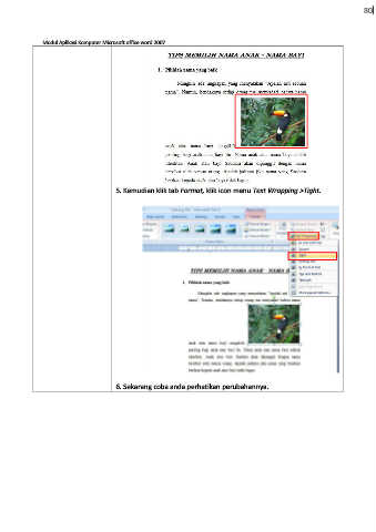 Modul Aplikasi Komputer Microsoft office word 2007 5. Kemud ian klik tab Format, klik icon menu Text Wrapping >Tight. 6. Sekarang coba anda perhatikan perubahannya.
