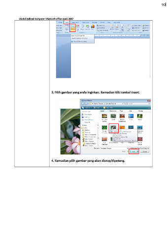 Modul Aplikasi Komputer Microsoft office word 2007 3. Pilih gambar yang anda inginkan. Kemudian klik tombol Insert. 4. Kemudian pilih gambar yang akan dicrop/dipotong.