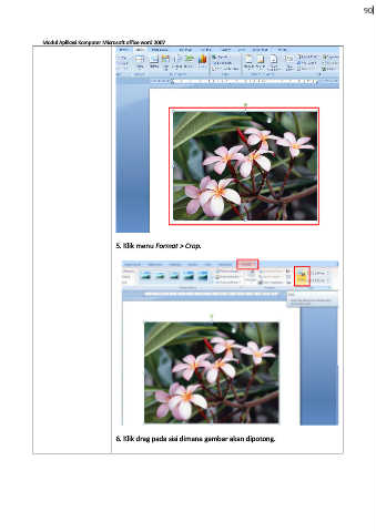 Modul Aplikasi Komputer Microsoft office word 2007 5. Klik menu Format > Crop. 6. Klik drag pada sisi dimana gambar akan dipotong.
