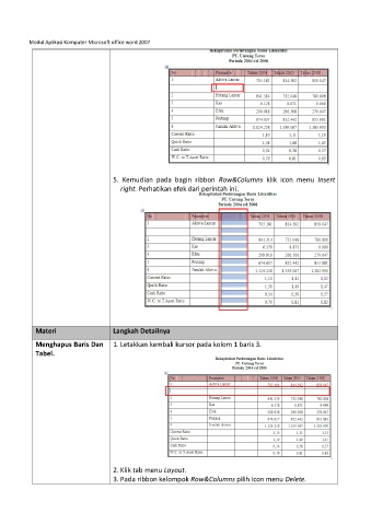Menghapus Baris Dan 1. Letakkan kembali kursor pada kolom 1 baris 3.