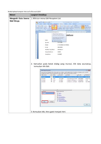 Mengedit Data Source 1. Klik icon menu Edit Recepient List.