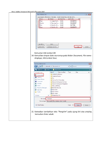 14. Kemudian simpan data sourcenya pada folder Document, File name :