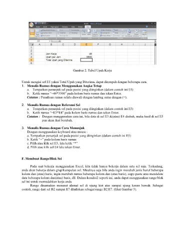 Untuk mengisi sel E5 yakni Total Upah yang Diterima, dapat ditempuh dengan beberapa cara.