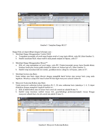 a. Tempatkan penunjuk sel awal range/bagian awal sel yang ingin diblok, yaitu B2 (lihat Gambar 3).