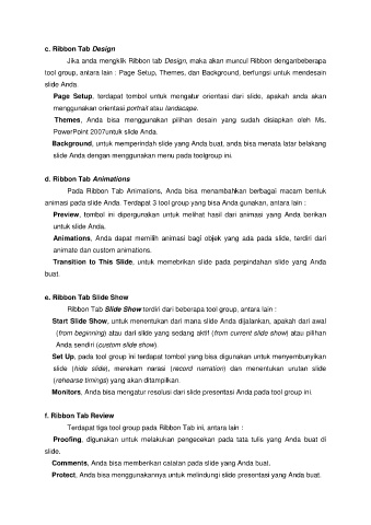 tool group, antara lain : Page Setup, Themes, dan Background, berfungsi untuk mendesain