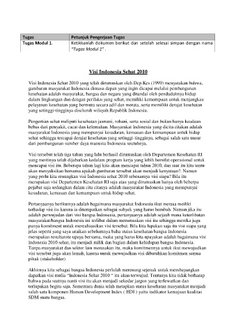 Visi Indonesia Sehat 2010 yang telah dirumuskan oleh Dep.Kes (1999) menyatakan bahwa,