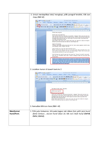 3. Untuk menduplikasi teks/ mengkopi, pilih paragraf terakhir, klik icon