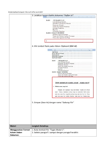 3. Letakkan kursor diakhir dokumen “Daftar Isi”.