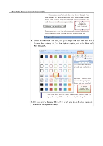 6. Untuk memformat text box, klik pada tepi text box, klik tab menu