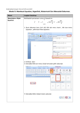 Modul 9. Membuat Equation, Hyperlink, Watermark Dan Mencetak Dokumen.