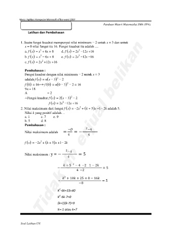 1. Suatu fungsi kuadrat mempunyai nilai minimum − 2 untuk x = 3 dan untuk