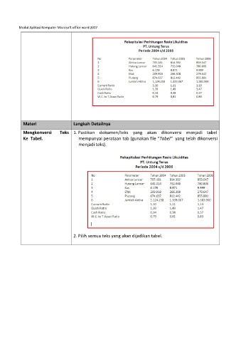 Mengkonversi Teks 1. Pastikan dokumen/teks yang akan dikonversi menjadi tabel
