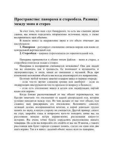нашем слуховом опыте. Поэтому регулировка баланса в миксе