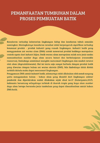 menggunakan zat warna alam (ZWA) untuk mewarnai produk batiknya merupakan