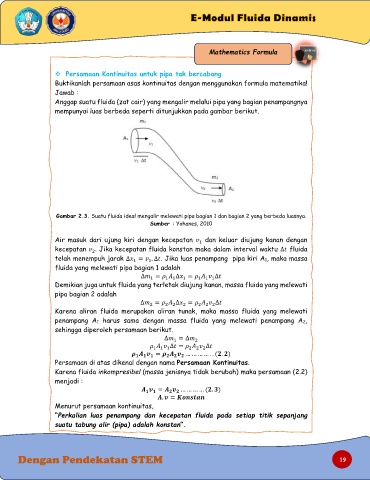 Karena aliran fluida merupakan aliran tunak, maka massa fluida yang melewati