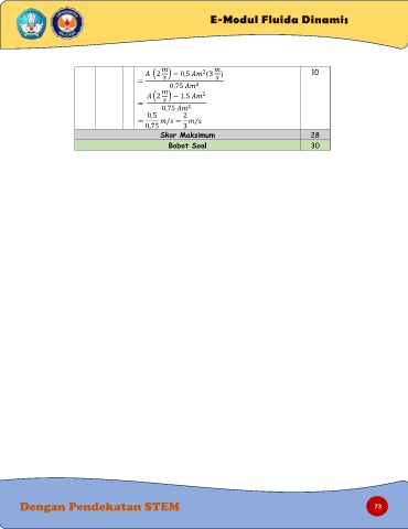 2 (2 ) − 0,5 (3 ) 10 = 0,75 2 (2 ) − 1.5 2 = 0,75 2 0,5 2 = / = / 0,75 3 Skor Maksimum 28 Bobot Soal 30 Dengan Pendekatan STEM 73