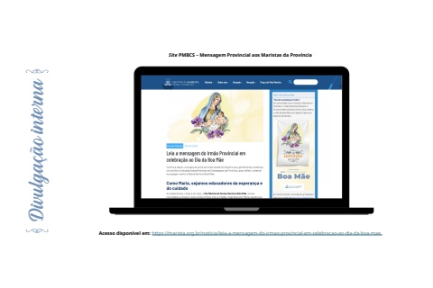 Divulga%u00e7%u00e3o internaSite PMBCS %u2013 Mensagem Provincial aos Maristas da Prov%u00ednciaAcesso dispon%u00edvel em: https://marista.org.br/noticia/leia-a-mensagem-do-irmao-provincial-em-celebracao-ao-dia-da-boa-mae.