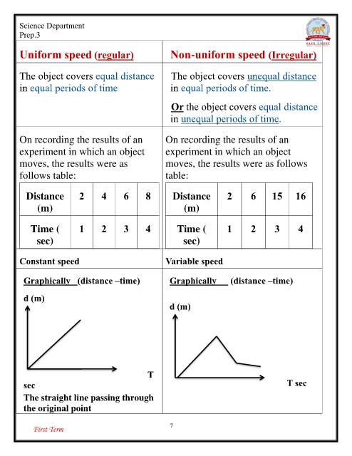 Science Department Non-uniform speed (Irregular)