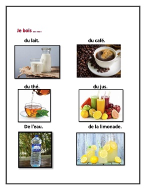 du lait. du café. du thé. du jus. De l’eau. de la limonade.