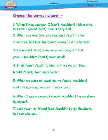 6. When I was younger, I (could /couldn’t) tie my shoes