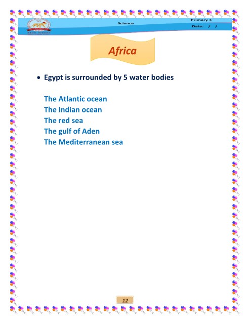 Africa • Egypt is surrounded by 5 water bodies The Atlantic ocean The Indian ocean The red sea The gulf of Aden The Mediterranean sea 12