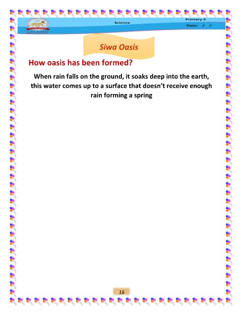 Siwa Oasis How oasis has been formed? When rain falls on the ground, it soaks deep into the earth, this water comes up to a surface that doesn’t receive enough rain forming a spring 16