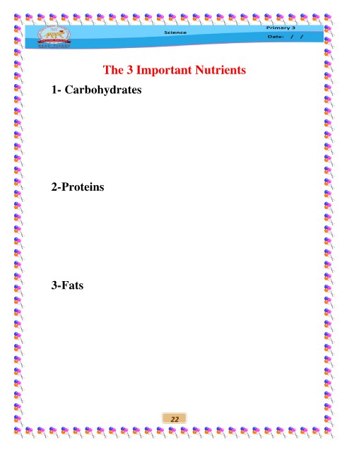 The 3 Important Nutrients 1- Carbohydrates 2- Proteins 3- Fats 22