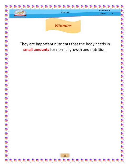 Vitamins They are important nutrients that the body needs in small amounts for normal growth and nutrition. 25