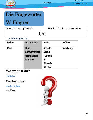 Wo .. ? – In …( Dativ ) Wohin .. ? – In ... ( akkusativ)