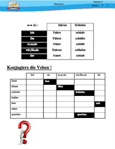 a (ä )                   fahren  Schlafen