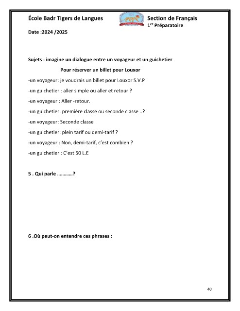 Sujets : imagine un dialogue entre un voyageur et un guichetier