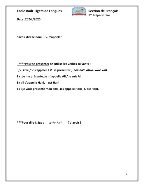 Ex : je me présente, je m’appelle Ali / je suis Ali.