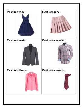 C’est une robe. C’est une jupe. C’est une veste. C’est une chemise. C’est une blouse. C’est une cravate.