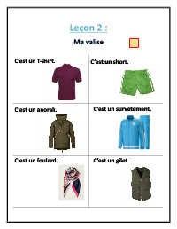 C’est un T-shirt. C’est un short. C’est un anorak. C’est un survêtement. C’est un foulard. C’est un gilet.