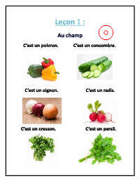 Au champ C’est un poivron. C’est un concombre. C’est un oignon. C’est un radis. C’est un cresson. C’est un persil.