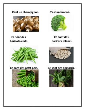 C’est un champignon. C’est un brocoli. Ce sont des Ce sont des haricots-verts. haricots -blancs. Ce sont des petit-pois. Ce sont des épinards.