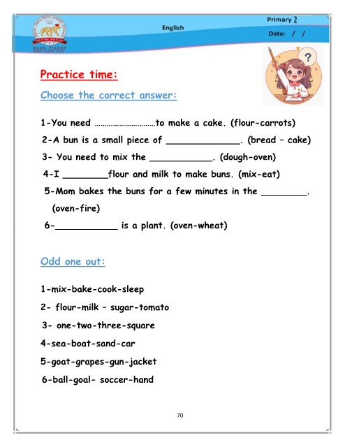 4-I ________flour and milk to make buns. (mix-eat)