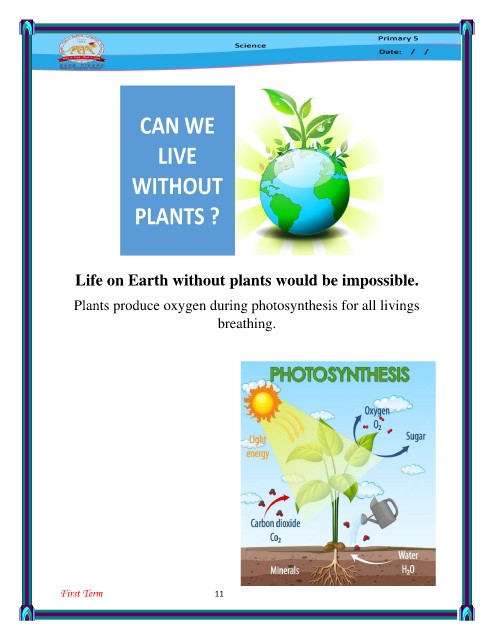 Life on Earth without plants would be impossible. Plants produce oxygen during photosynthesis for all livings breathing. First Term 11
