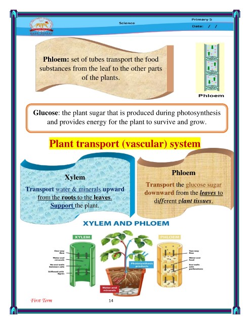 Transport water & minerals upward Transport the glucose sugar