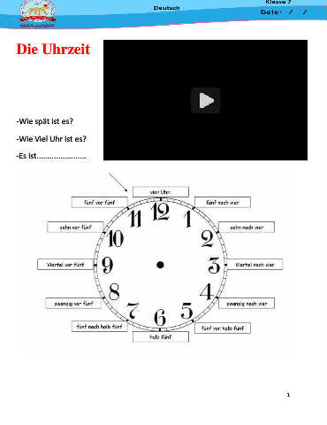 Die Uhrzeit -Wie spät ist es? -Wie Viel Uhr ist es? -Es ist....................... 1 7