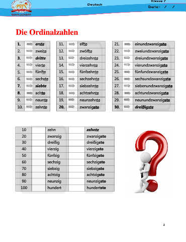 2. zweite 12. dreizehnte 23. dreiundzwanzigste