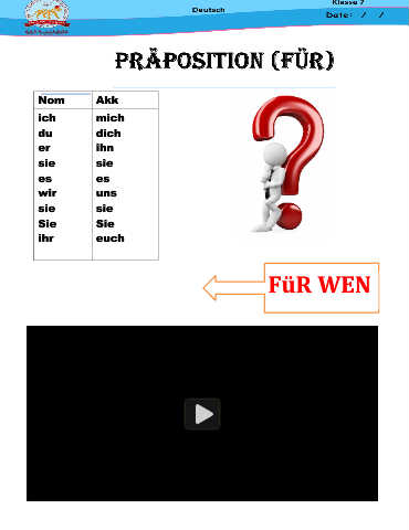 Nom Akk ich mich du dich er ihn sie sie es es wir uns sie sie Sie Sie ihr euch FüR WEN 4
