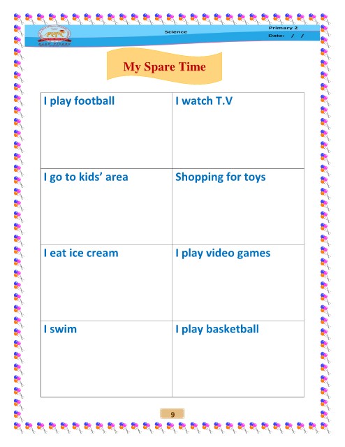 My Spare Time I play football I watch T.V I go to kids’ area Shopping for toys I eat ice cream I play video games I swim I play basketball 9