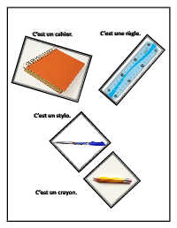 C’est un cahier. C’est une règle. C’est un stylo. C’est un crayon.